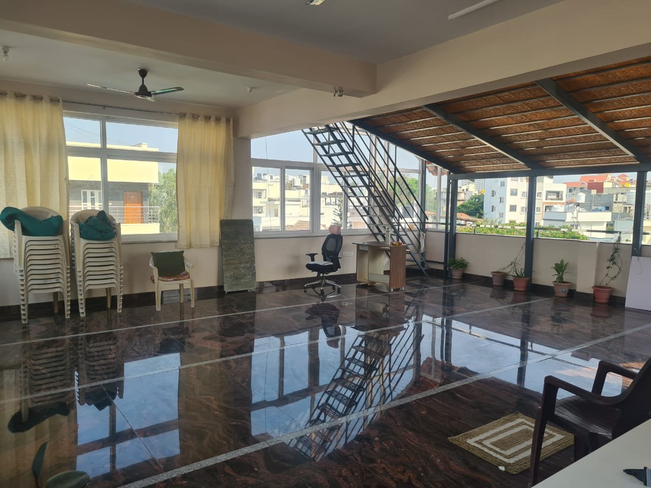 Looking for a well-equipped space for your classes, workshops, or office needs? We have a 1200 sqft fully covered terrace space available for hourly, daily, or long-term rental near Decathlon, Bannerghatta Main Road, Bangalore. This versatile space is perfect for yoga classes, dance sessions, tuition classes, meditation groups, workshops, co-working, or startup office use.https://renthouzz.in/property-type/office/