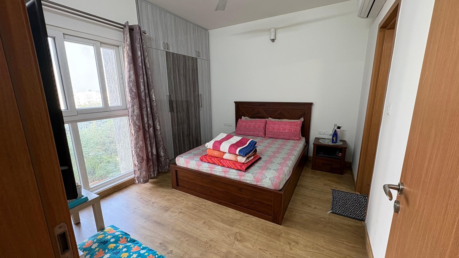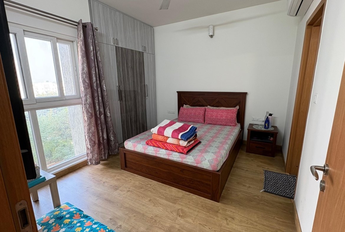 2bhk fully furnished flat for rent | Bedroom | 84/2, off Thanisandra Main Road, behind Embassy Manyata Business Park, Rachenahalli, Jakkur, Bengaluru, Karnataka 560077 | www.renthouzz.in/
